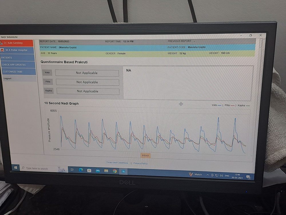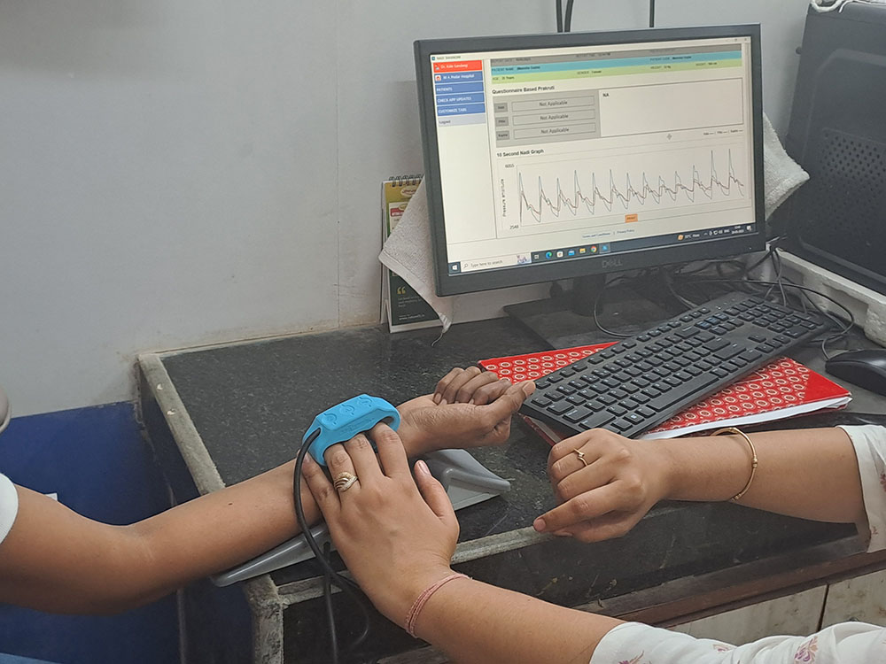 - Nadi Tarangini- Nadi pariksha of the patients are performed on the Nadi tarangini machine the digital reporting system avails with the Dosha avastha in the patients.